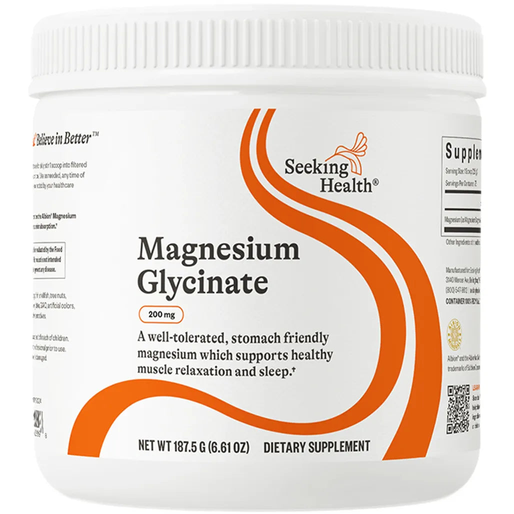 Seeking Health Magnesium Glycinate Powder provides a bioavailable form of magnesium to support muscle, nerve, and heart health, relaxation, and healthy blood pressure levels.