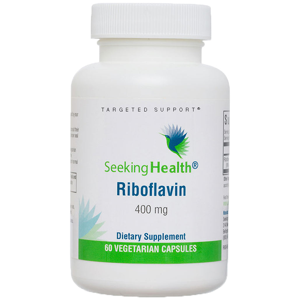 Riboflavin by Seeking Health delivers 400 mg of vitamin B2 per capsule to support energy production, red blood cell formation, growth, and conversion of key nutrients.