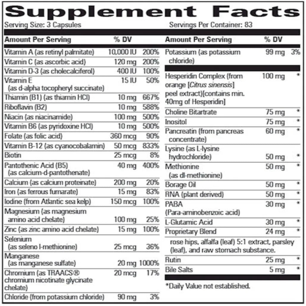 Multi Caps, a high potency multiple vitamin and mineral formula. Should be used in all maintenance schedules. Provides 100% or more RDA of 13 vitamins...