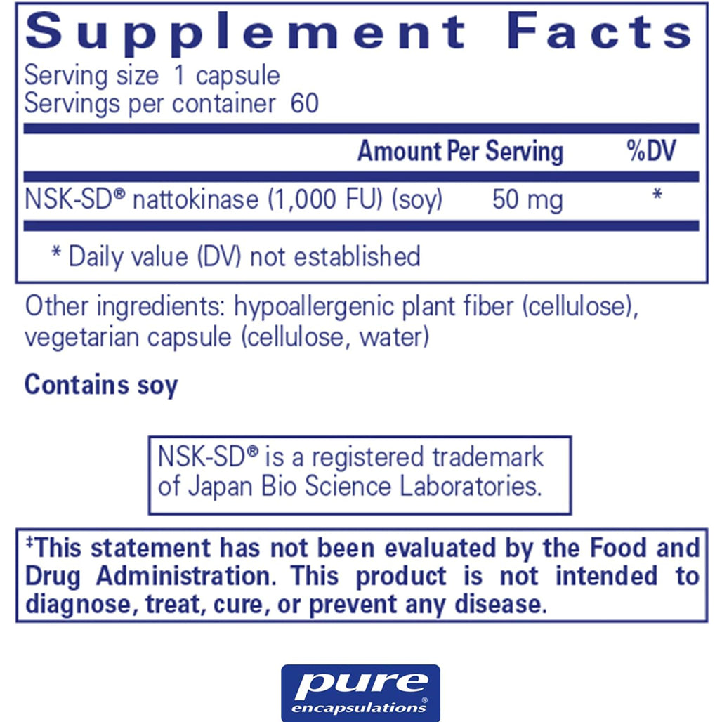 NSK–SD 50 mg- 60 Capsules, 120 Capsules | Pure Encapsulations | Supports healthy fibrinolytic activity and blood flow