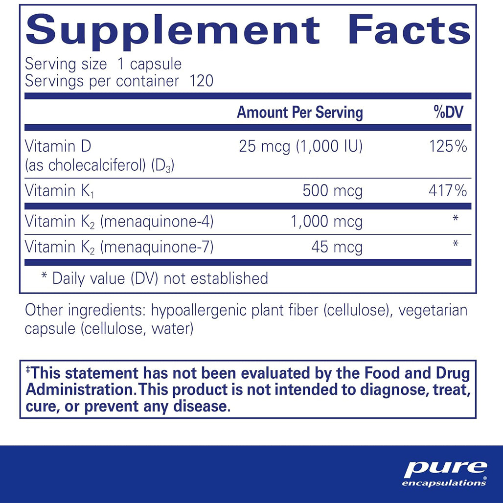 Pure Encapsulations Synergy K | Supplement with Vitamin K1, K2, and D3 to Support Bones | Blood Vessels, Vascular Elasticity, and Calcium Utilization | 60 Capsules and 120 Capsules
