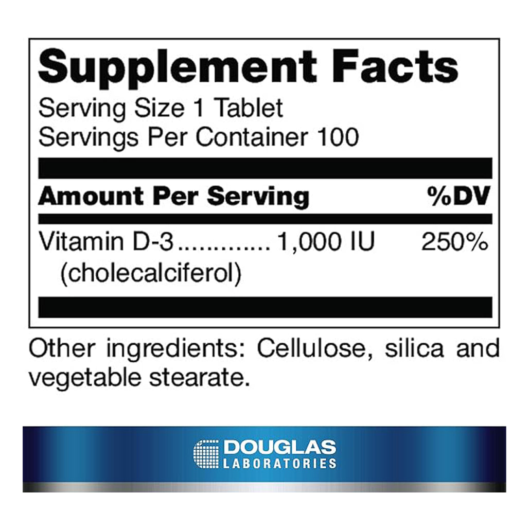 Vitamin D 1,000 IU by Douglas Laboratories | Cellulose, silica, and vegetable stearate | 100 Tablets