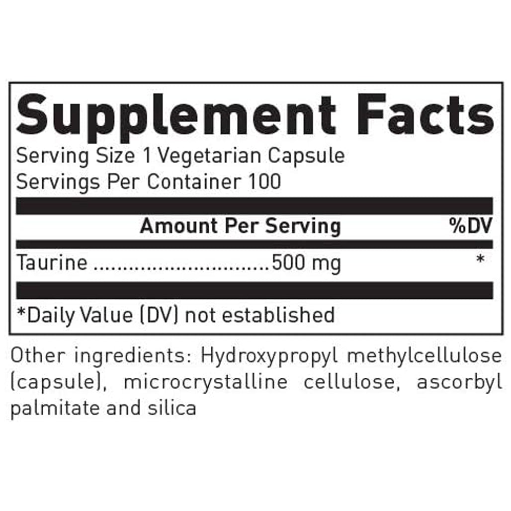 Taurine 500 mg by Douglas Laboratories | Development of the nervous system, retina, and muscle tissue | 100 Capsules