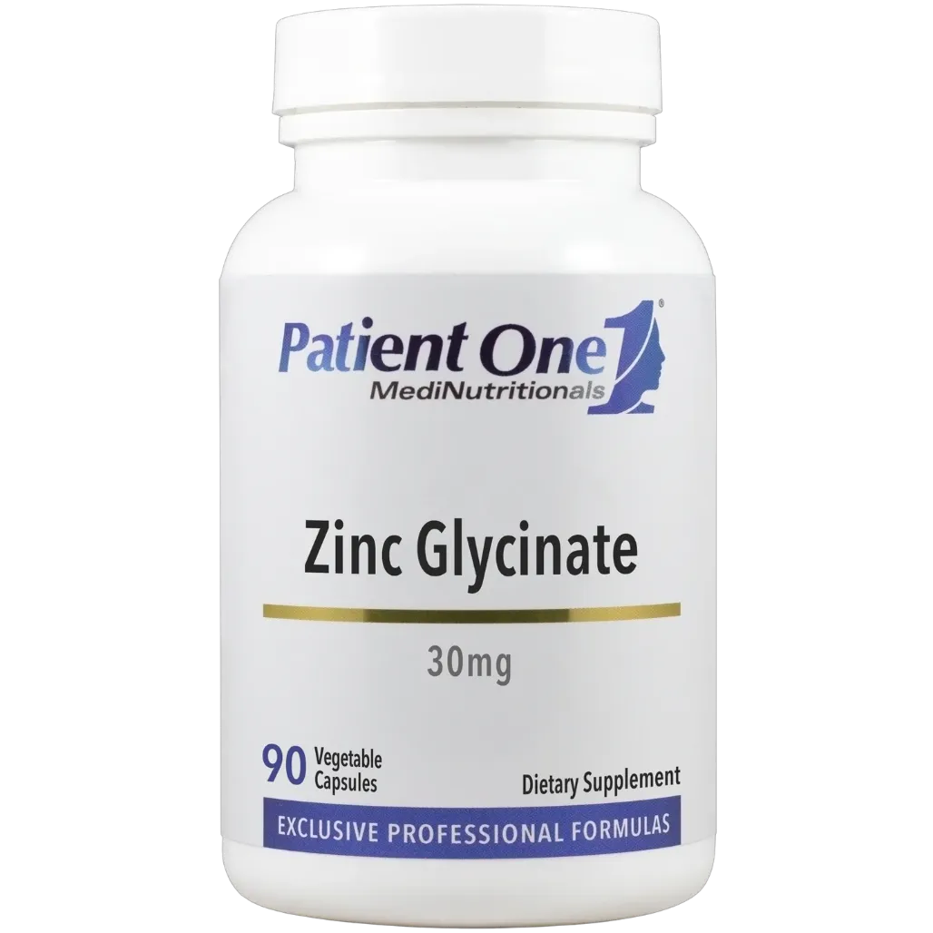 Because zinc is ionized in the gut prior to absorption, Patient One supplies 30mg of zinc as Zinc Bisglycinate, a totally reacted, nutritionally functional zinc amino acid chelate. In this proprietary TRAACS® formulation, zinc is coupled with two glycine molecules to facilitate its absorption across the intestinal wall and reduce interference from phytates and competing minerals. This form has been shown to be readily absorbed by the body.