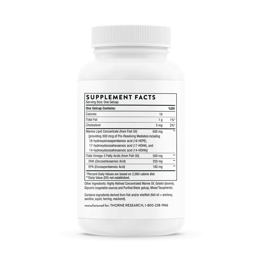Pro-Resolving mediators (PRMs) are the end products of the body’s metabolism of EPA and DHA. Thorne’s Pro-Resolving Mediators supplement includes the precursors the bod...