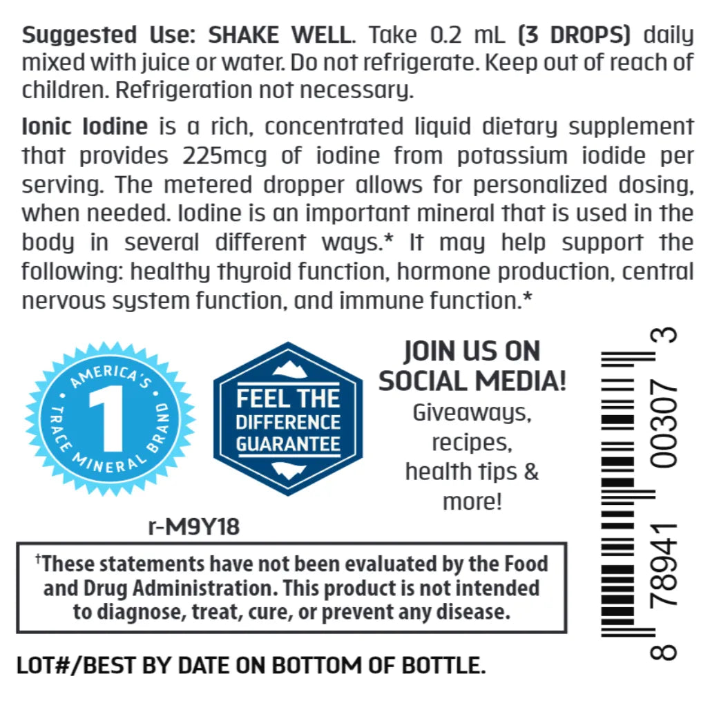Ionic Iodine is a rich, concentrated liquid dietary supplement that provides 225 mcg of iodine from potassium iodide per serving, plus over 72 ioni...