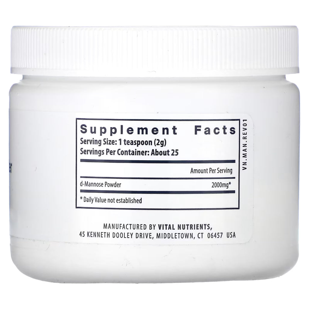 Vital Nutrients Mannose Powder - 50 and 100 Grams | Supporting Bladder Health and Comfort
