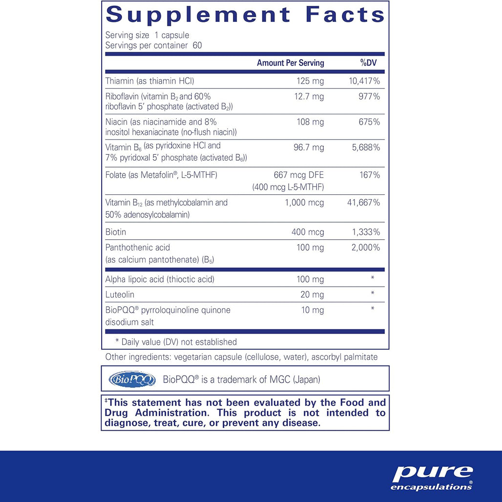 Pure Encapsulations Ultra B-Complex with PQQ | Vitamin B Supplement to Support Nerves, Cells, Methylation | Mitochondrial Health | 60 Capsules