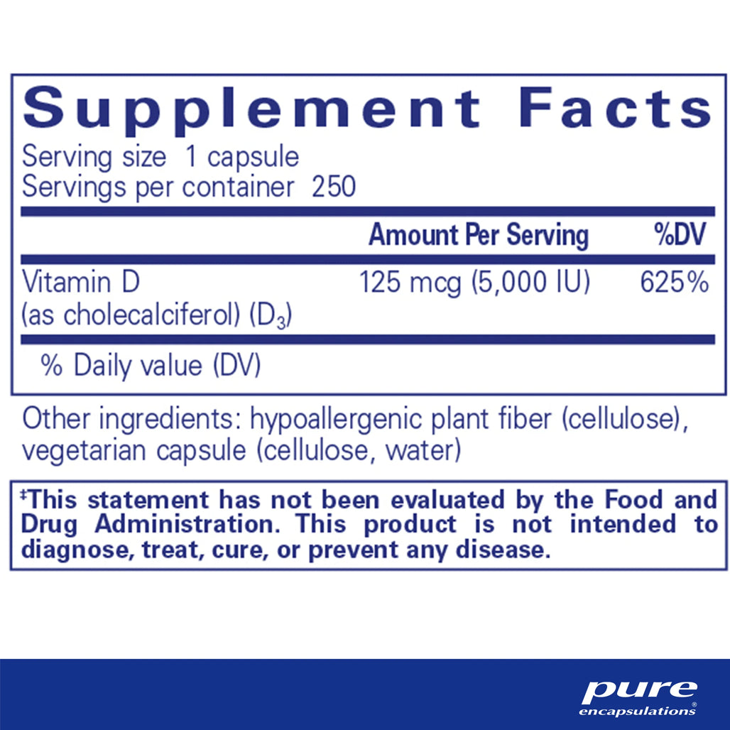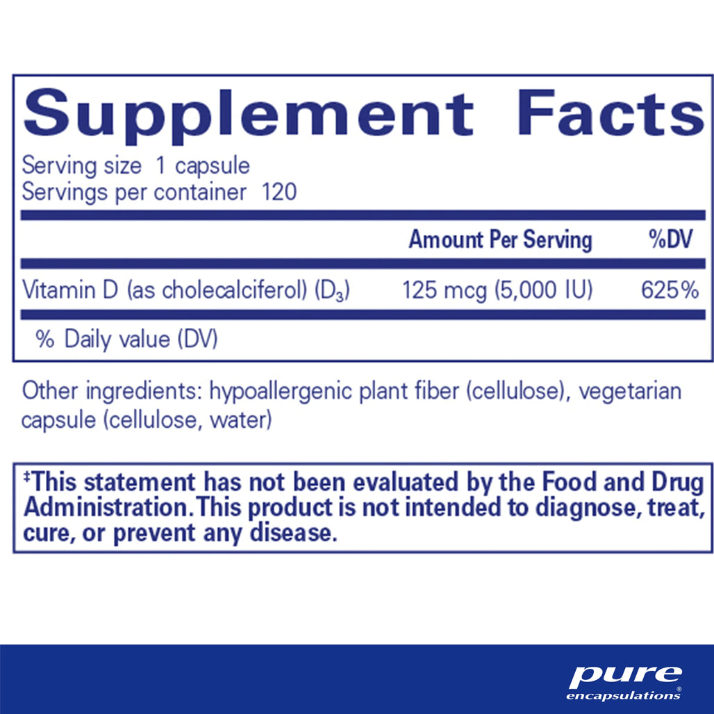 Vitamin D3 5000 iu Pure Encapsulation | Supports healthy bone composition | Made with hypoallergenic, vegetarian ingredients | 60 Capsules