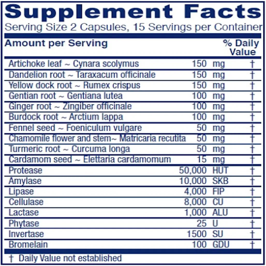 Traditional bitter herbs promote healthy digestion. Includes a full complement of plant-based digestive enzymes to support digestive functions more fully – in a co...