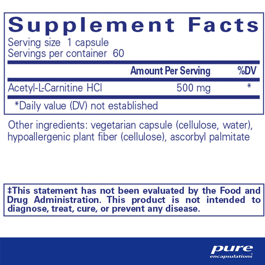 Pure Encapsulations Acetyl-L-Carnitine 500mg - 60 Capsules | Supports for Cognitive Function and Brain Health