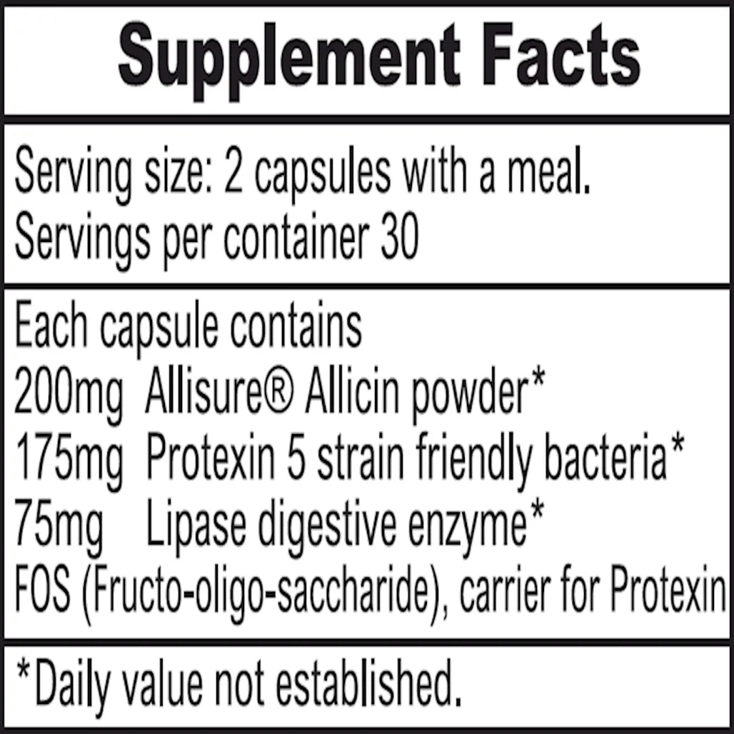 Allimax PrePro blends premium enzymes and pure allicin from Spanish garlic to support digestion and gut balance. Helps break down proteins, fats, carbs and supports healthy flora.