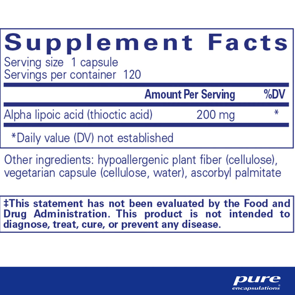 Alpha Lipoic Acid is a water and fat soluble antioxidant. Alpha Lipoic Acid helps maintain healthy glucose metabolism, supports the nervous system and provides nutritional suppo...