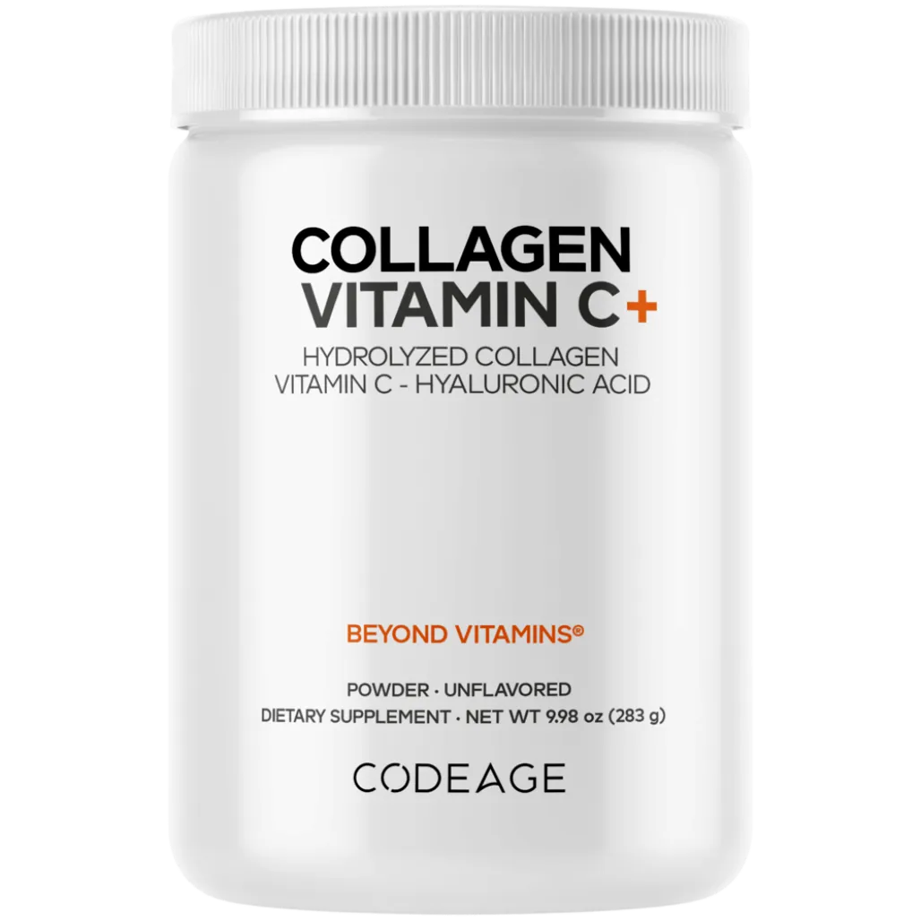 Enhance your collagen regimen with Codeage Collagen Vitamin C+ supplement powder, featuring 20g of grass-fed collagen per serving, paired with Vitamin C, hyaluronic acid, 18 amino acids, and digestive enzymes for a well-rounded collagen supplement. • This hydrolyzed collagen powder contains 20g of grass-fed collagen types 1 & 3 per serving. • This collagen peptides formula includes Vitamin C and hyaluronic acid, two key ingredients often used together in skin care. This unflavored collagen powder also contains 18 amino acids. • Digestive enzyme blend DigeSEB® is included in the formula, designed to complement the collagen peptides and support daily supplementation. • Non-GMO, dairy-free, soy-free, gluten-free, and keto-friendly, this unflavored collagen powder is free from carbs and suitable for various dietary needs and preferences. • Manufactured in the USA with globally sourced ingredients in a cGMP-certified facility for quality and purity.