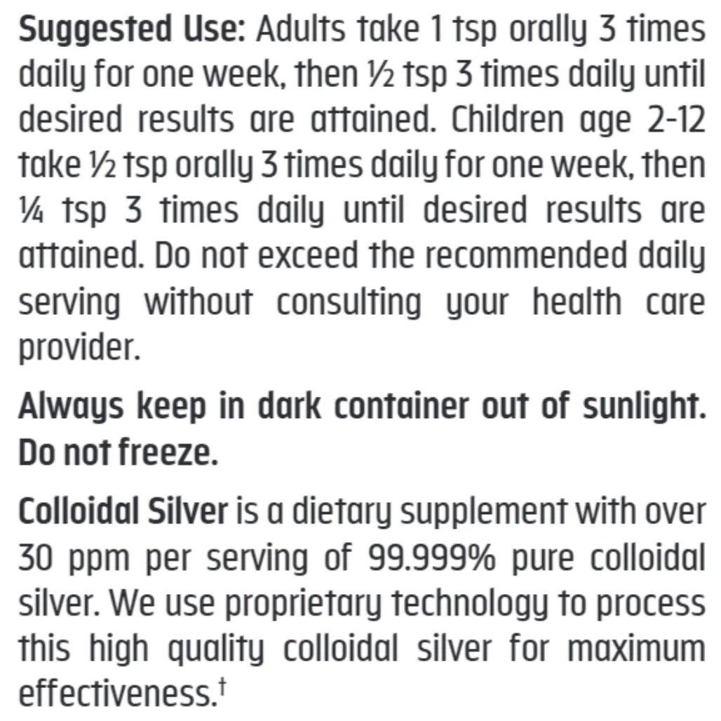 Colloidal Silver is a dietary supplement with over 30 ppm per serving of 99.999% pure colloidal silver to support and maintain a healthy immune syst...