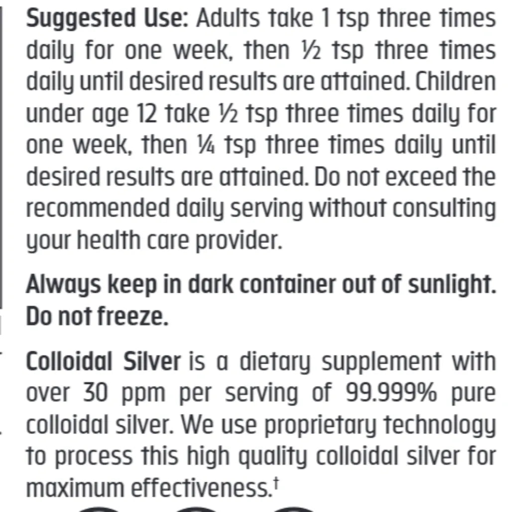 Colloidal Silver is a dietary supplement with over 30 ppm per serving of 99.999% pure colloidal silver to support and maintain a healthy immune syst...