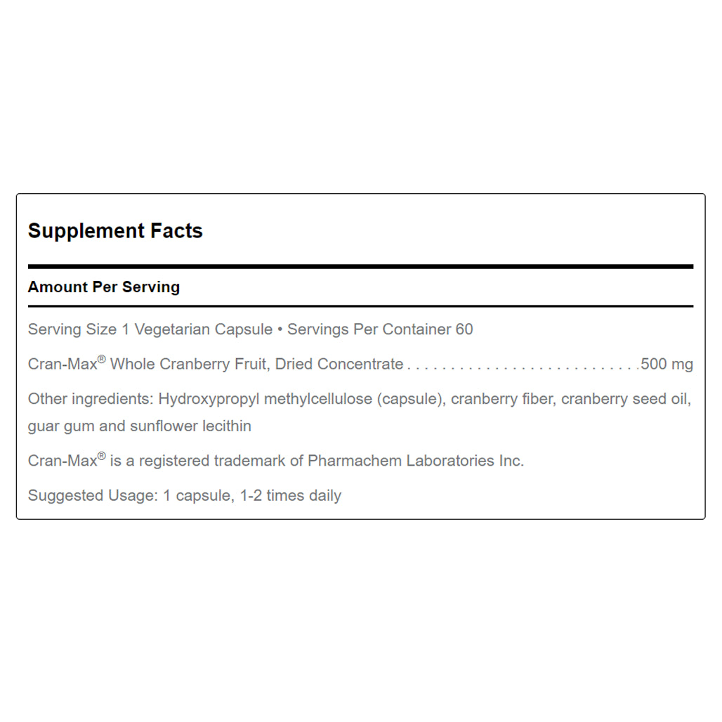 Cran-Max capsules contain 500 mg of 100% whole cranberry fruit concentrated extract. This 100% p...
