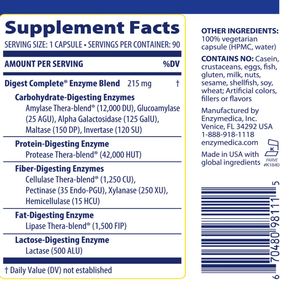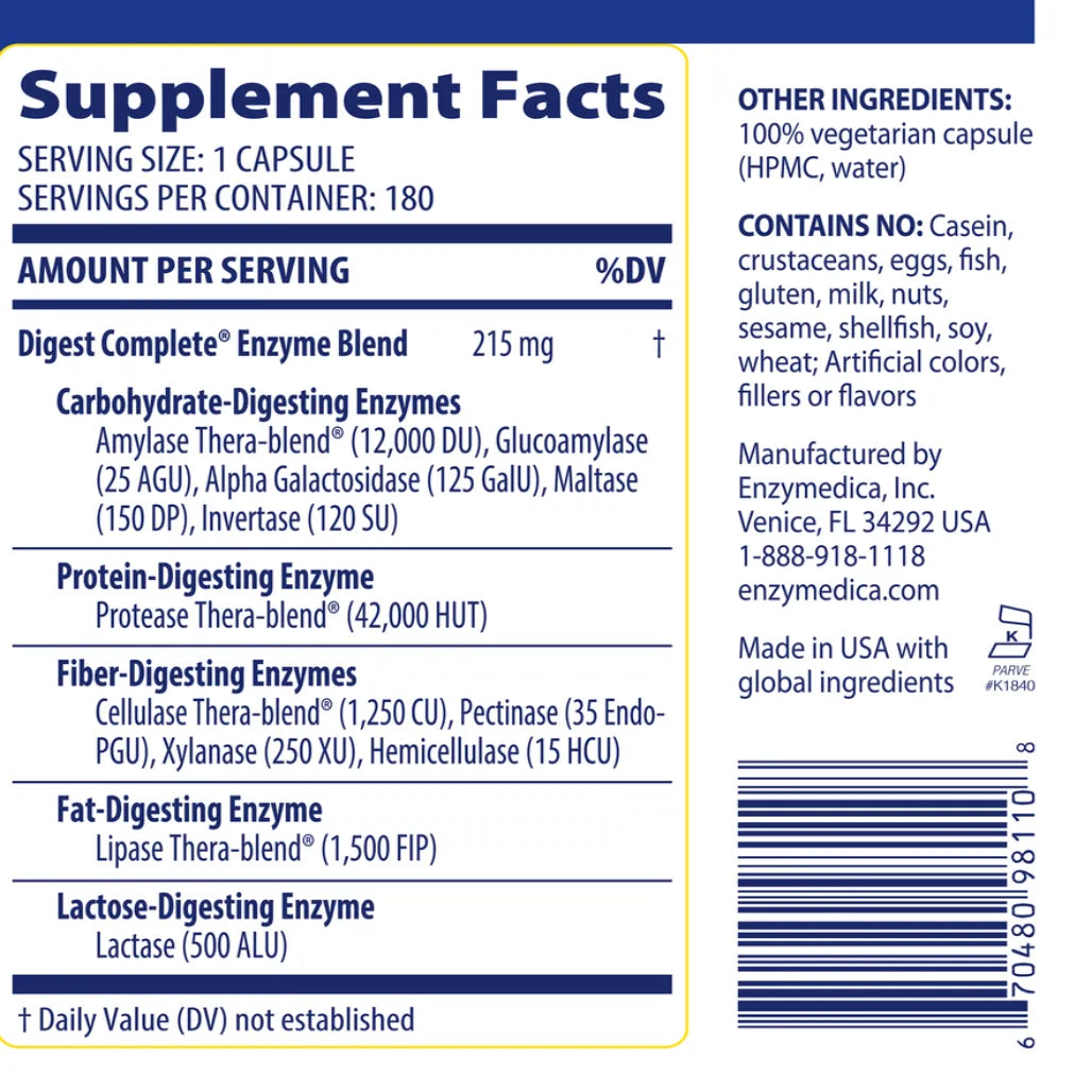 Full-range, everyday enzymes Effectively breaks down carbs, fats, fiber, and protein. Speeds digestion & helps to absorb nutrients. Converts daily meals into all-day energy....