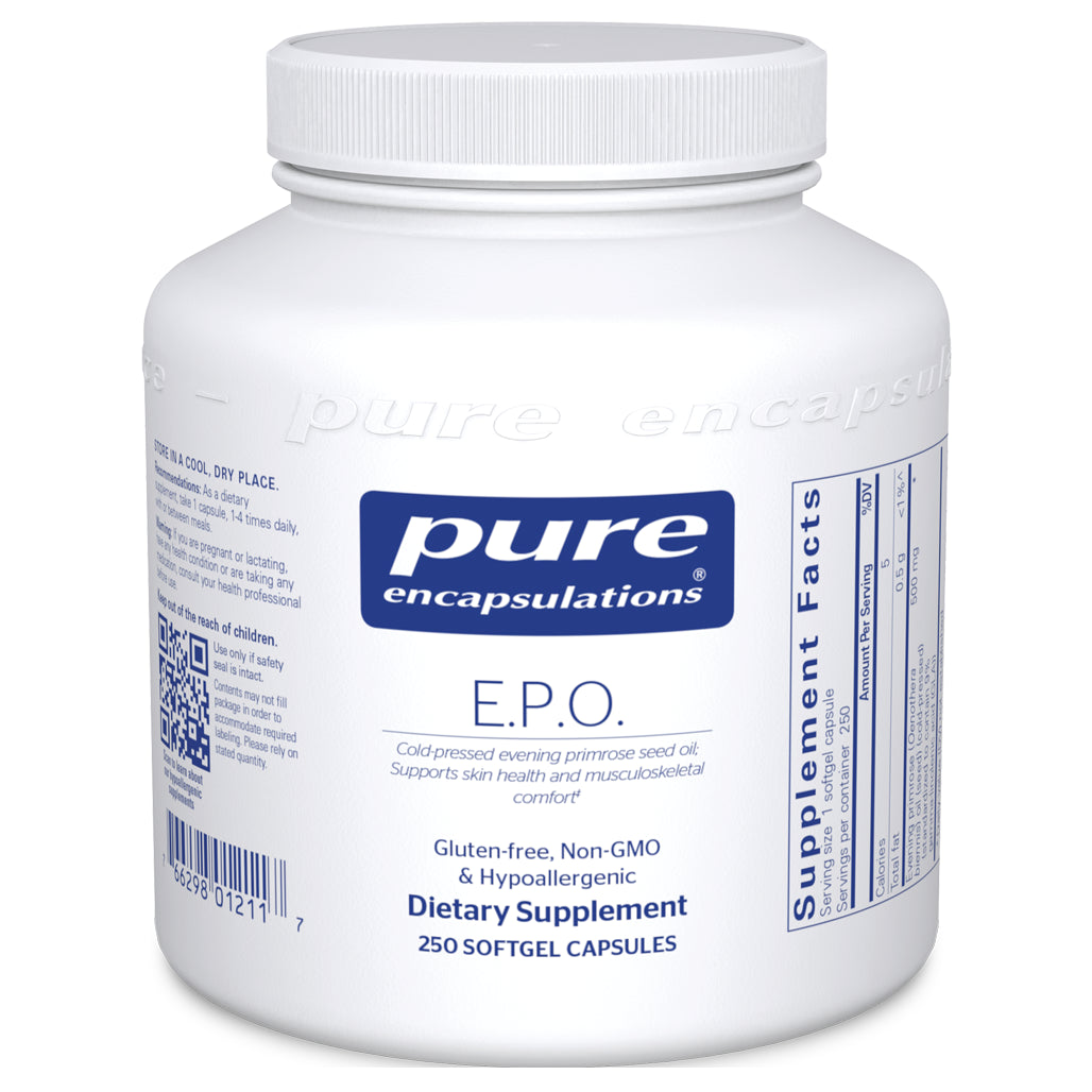 Evening primrose oil painting(E.P.O) by Pure Encapsulation supports healthy skin, cardiovascular function and premenstrual comfort. E.P.O is made from the pure cold-pressed even...