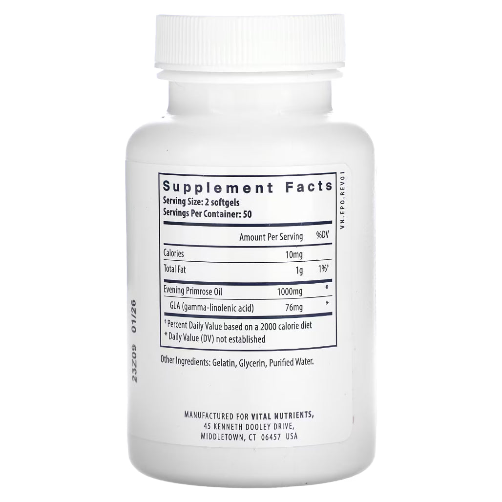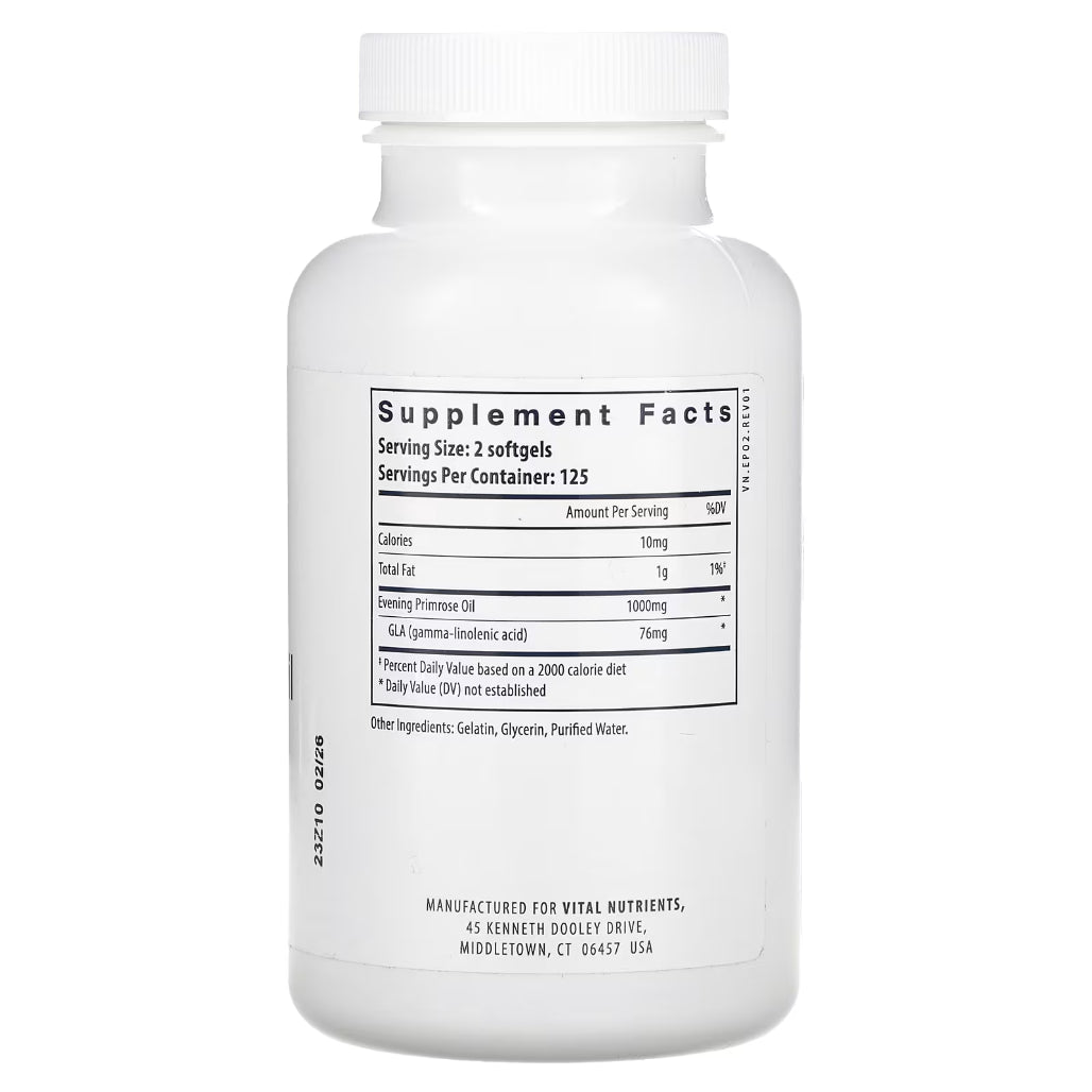 Vital Nutrients Evening Primrose Oil 1000mg - 100 and 250 Softgels Capsules | Maintain Nerve Function