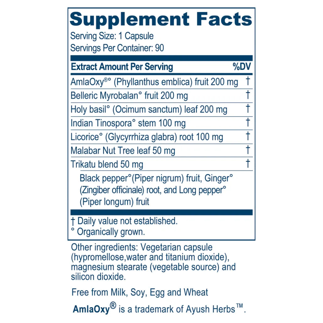 Flucomune™ is a proprietary blend of seven herbs combined for their immune-supporting properties. Emblica officinalis, also known as indian gooseberry or amla f...