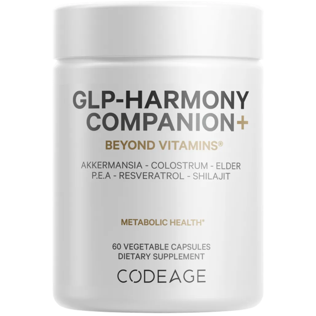 Codeage GLP-Harmony Companion+ supplement combines Lion's Mane, PEA, colostrum, shilajit, elder fruit, akkermansia, resveratrol, and other ingredients to offer a modern suppleme...