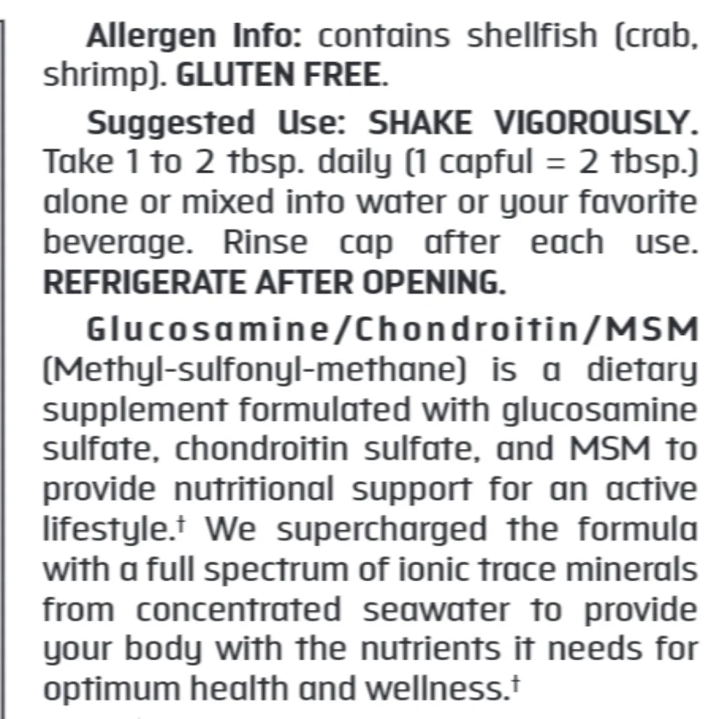 Glucosamine/Chondroitin/MSM (Methyl-sulfonyl-methane) with ConcenTrace® is a dietary supplement that provides nutritional support for joints and con...