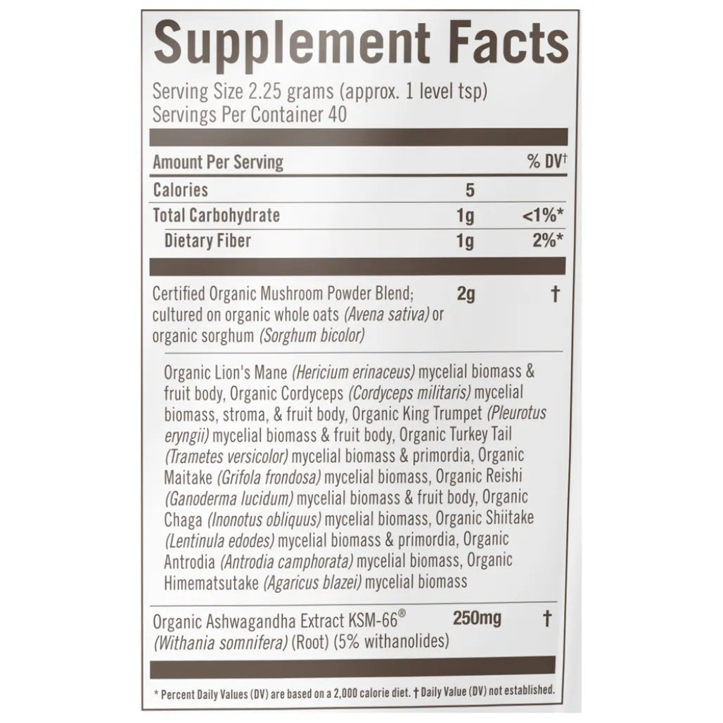 Supercharge your daily health with Om’s unique Mushroom Master Blend. 10 species of certified 100% organic mushroom mycelial biomass and fruit body powder cont...