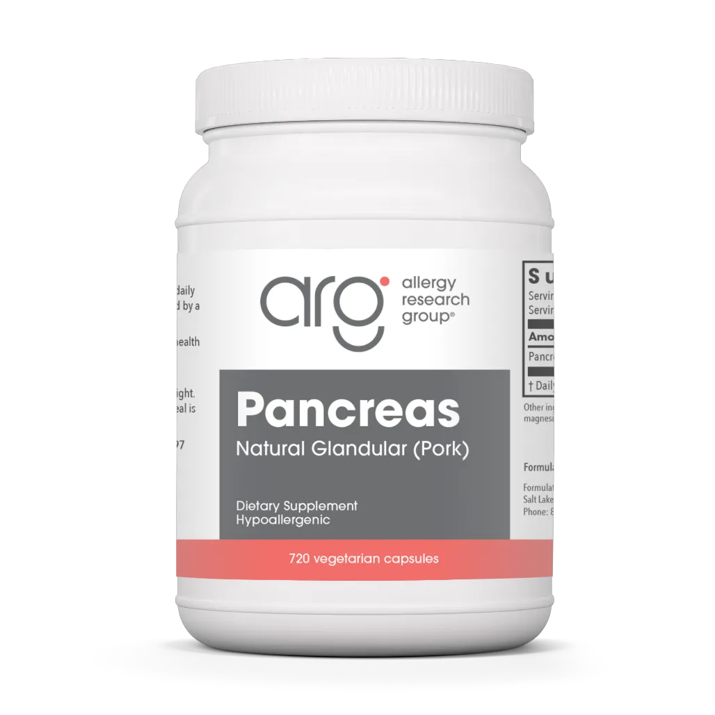 Allergy Research Group Pancreas Pork - 720 Vegcaps are highly popular among glandular supplements because they are properly processed and contain all the biologically active components. While manufacturing, pancreatic enzymes, natural lipid factors, vitamins, minerals, and hormone precursors are not destroyed, adding greater therapeutic value to the supplement.