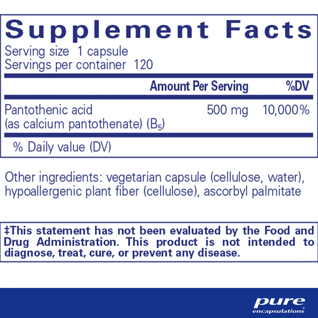 Pure Encapsulations Pantothenic Acid - 120 Capsules | Supplement to support Nutrient Metabolism and Cellular Energy Production