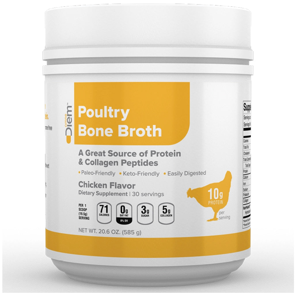 Diem offers a Poultry Bone Broth supplement that has been made with 100% fresh free range, Norwegian poultry, and is a great source of protein and collagen peptides.