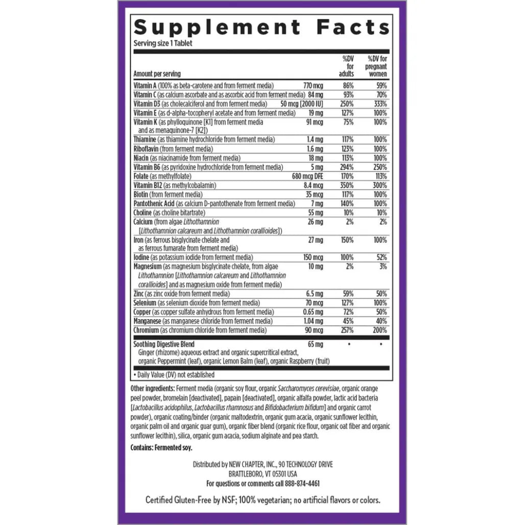 Other Ingredients: Ferment media (organic soy flour, organic Saccharomyces cerevisiae, organic orange peel powder, bromelain [deactivated], papain [deactivated], organic alfalfa powder, lactic acid bacteria [L. acidophilus, L. actobacillus rhamnosus, B. ifidobacterium bifidum], organic carrot powder), organic gum acacia, organic maltodextrin, hydrated silica; Less than 2% of: organic coating (organic maltodextrin, organic sunflower lecithin, organic palm oil, organic guar gum).Serving size: 1 Tablet