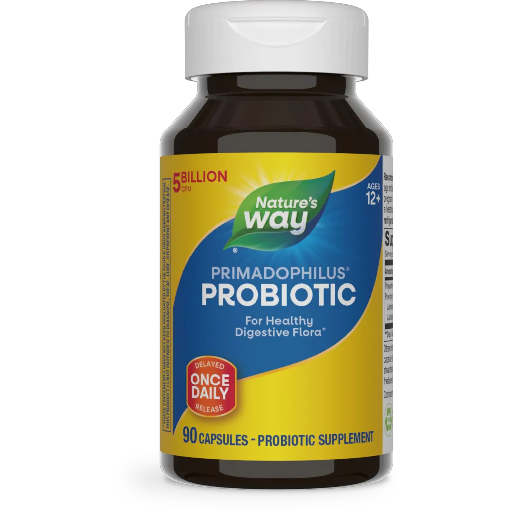 Probiotic capsules for ages 12+ with 5 billion CFUs & 2 strains of bacteria.