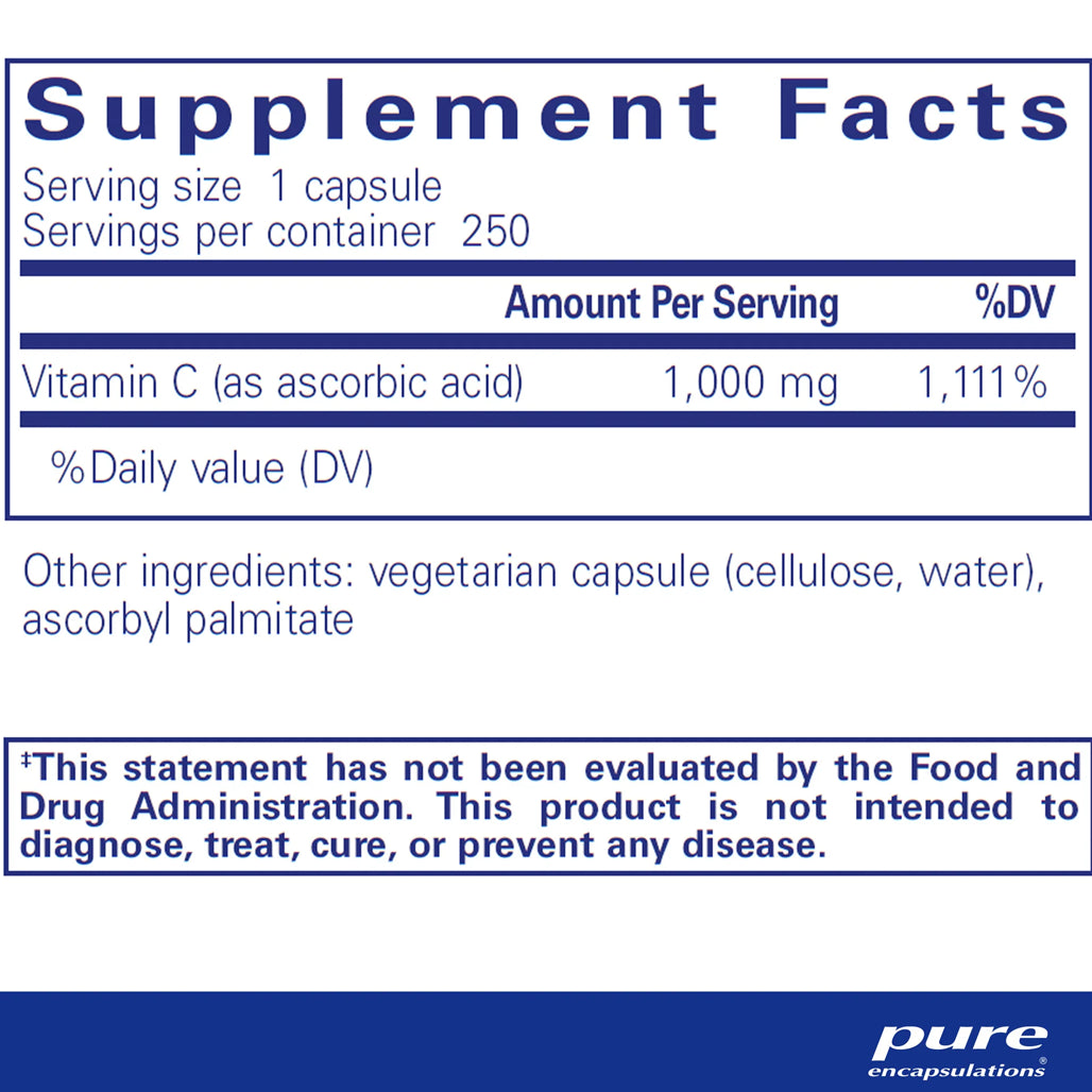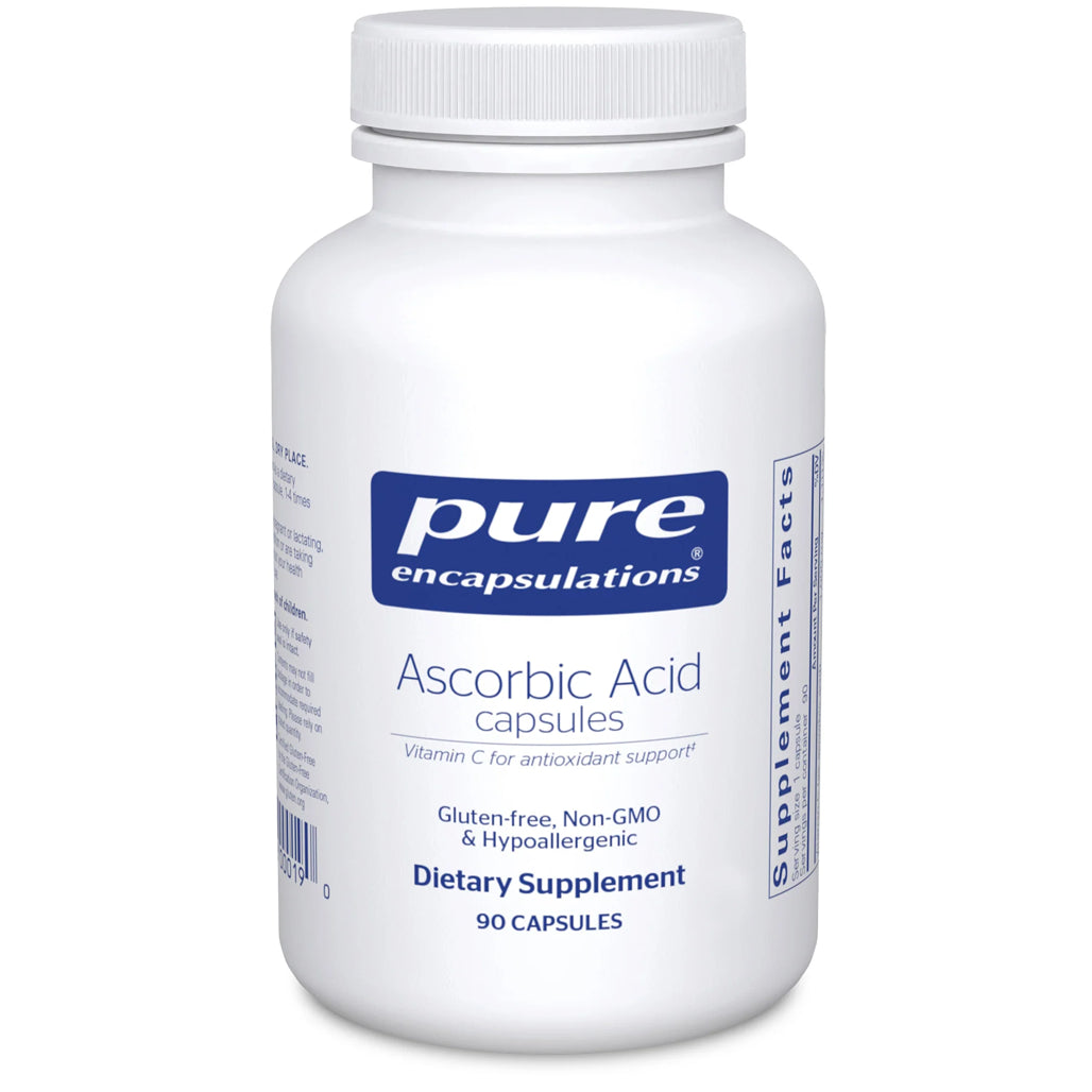 Pure Encapsulations Ascorbic Acid Capsules | Vitamin C Supplement for Antioxidant Defense, Immune Support, and Vascular Integrity | 90 Capsules and 250 Capsules.