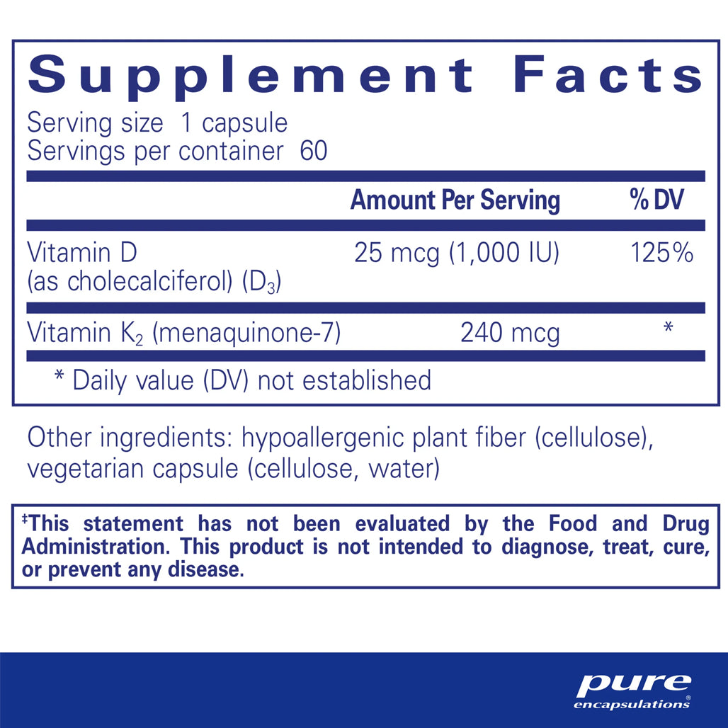 Pure Encapsulations PureHeart K2D | Hypoallergenic Supplement to Promote Calcium Homeostasis | Cardiovascular Function | 60 Capsules