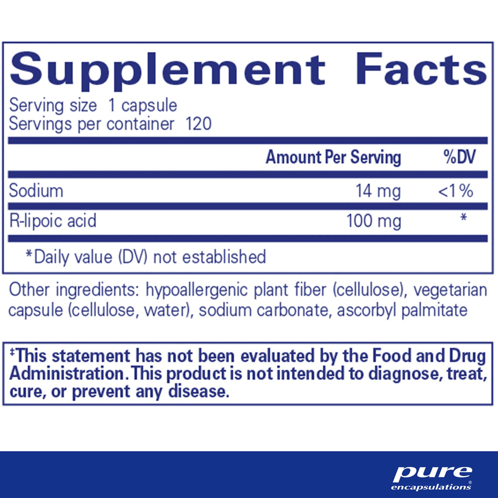 R-Lipoic Acid Pure Encapsulations | R-Lipoic Acid Supplement | 60 Capsules and 120 Capsules