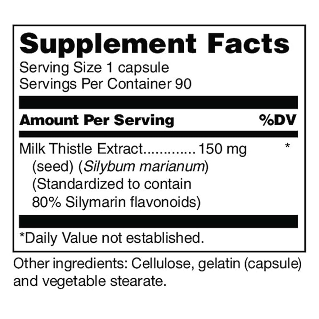 Silymarin/Milk Thistle | 90 Capsules | Contain 150 mg of milk thistle extract, standardized to contain a minimum of 80% of the flavonoid silymarin.