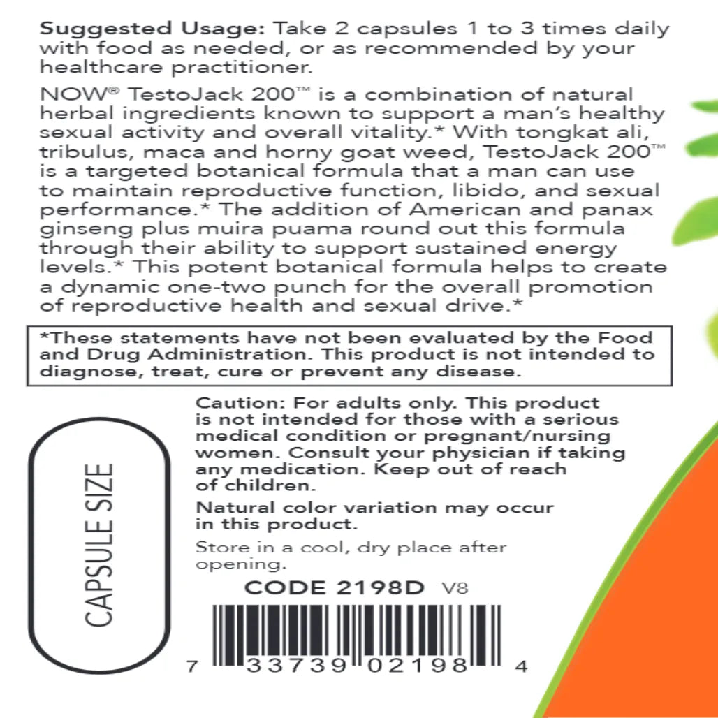 NOW® TestoJack 200™ is a combination of natural herbal ingredients known to support a man's healthy sexual activity and overall vitality.* With Tongkat Ali, Tribulus...