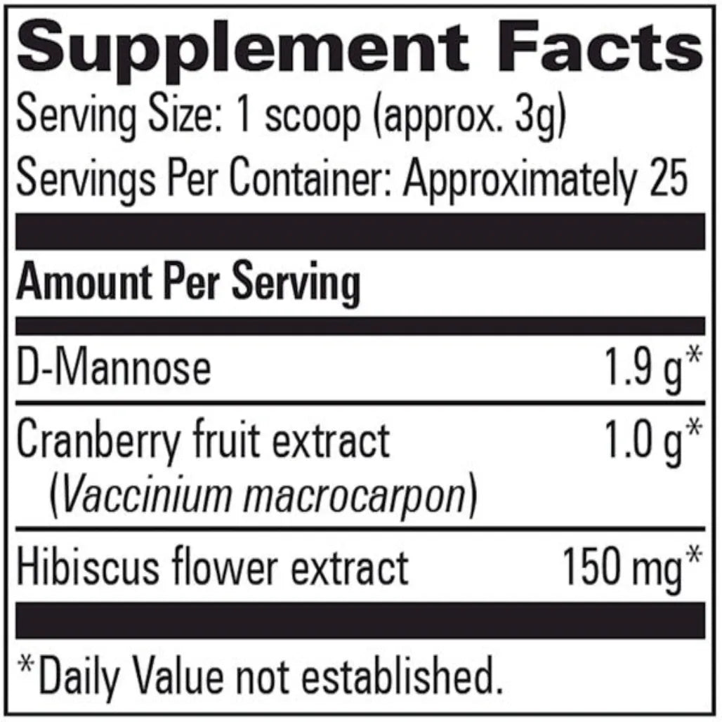 A Comprehensive Formula for Urinary Tract Health Containing Pure D-Mannose Powder with Extracts of Hibiscus and Cranberry.*