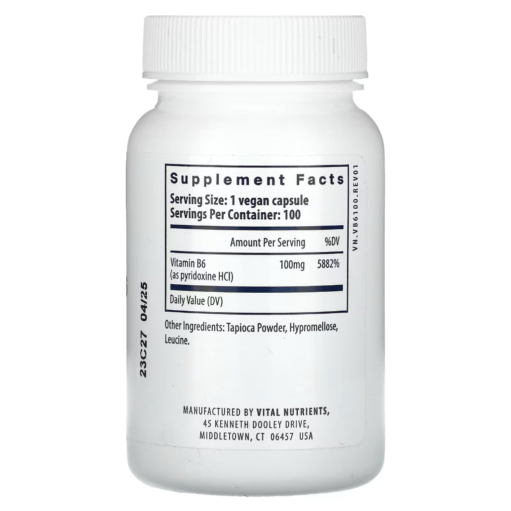 Vital Nutrients Vitamin B6 100mg - 100 Vegetarian Capsules | Support Nervous System