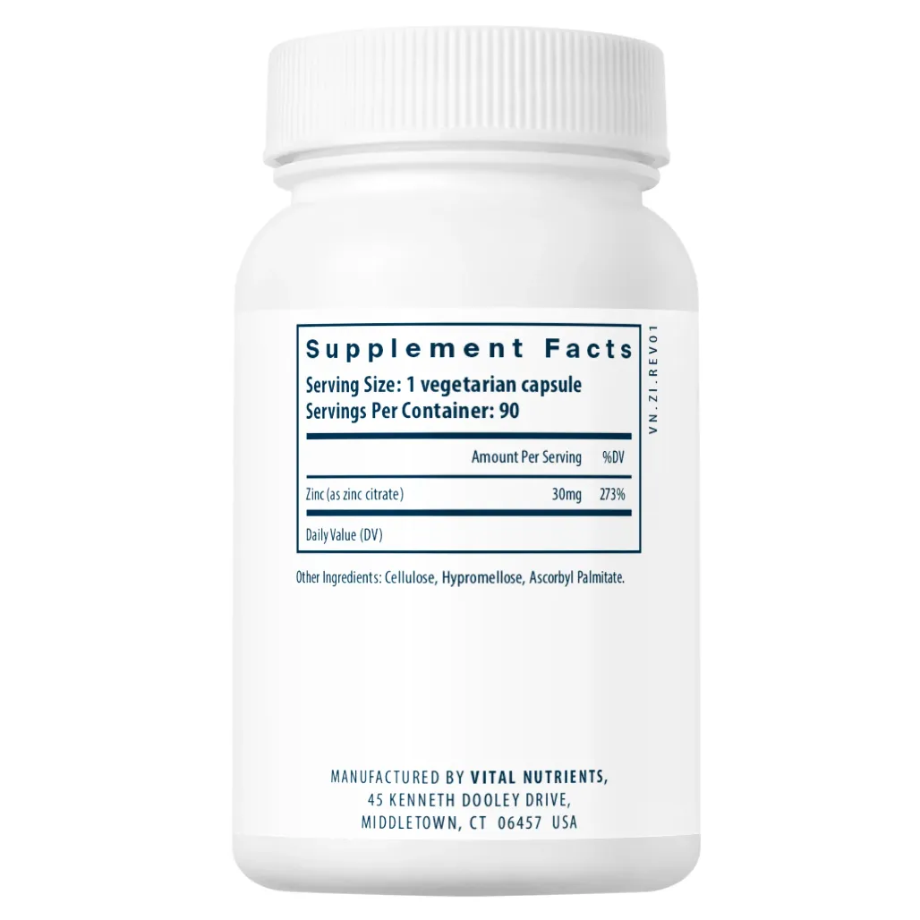 Vital Nutrients Zinc Citrate 30mg - 90 &180 Vegetarian Capsules | Nourish Your Immune Health